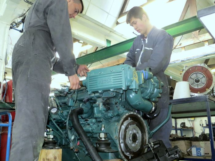 Le Volvo D6 s'est réveillé. Après plusieurs mois de soins intensifs prodigués par les élèves de 1ère et Terminale en Bac Pro Maintenance nautique, le moteur remis à neuf vient de faire raisonner ses six cylindres dans l'atelier mécanique de l'INB.